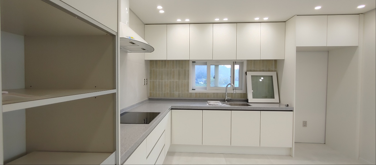 ㄱ자형태의 주방입니다.